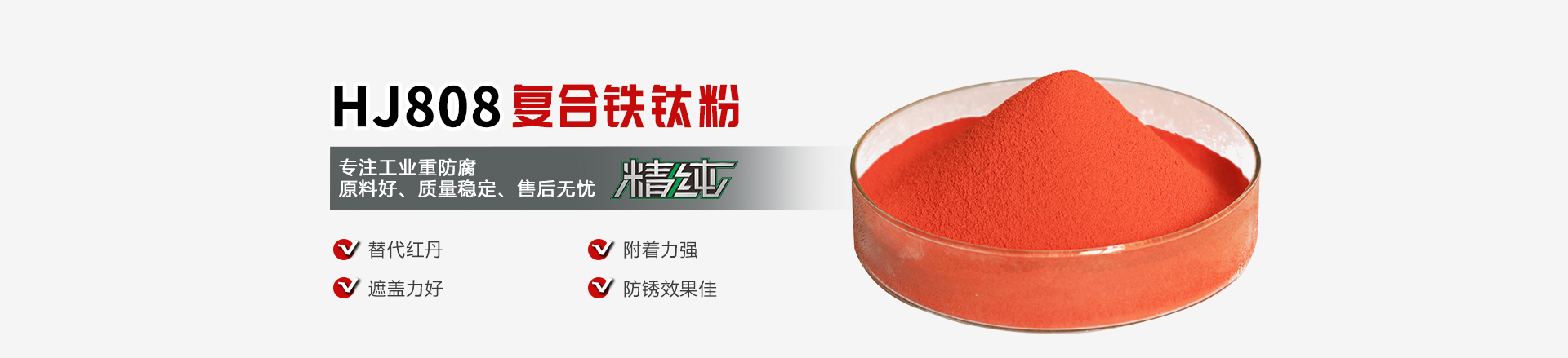 HJ808復合鐵鈦粉適用于水性、油性各類型基料制作無毒防銹漆、底漆及底面合一防銹漆,可完全或部分取代紅丹防銹顏料。通過多種有機助劑對超細顏料表面進行高溫處理,加入超聲分散后的納米材料,使用偶聯劑進行改性處理,使其在顏料表面形成致密的包覆層,包覆使顏基料與底材附著力更親和,有效阻礙水分子、氧氣及其他氣體對鋼鐵的侵蝕,極大增強顏料在鋼鐵表面的附著力。同時,產品所含的復合磷酸鹽在鋼鐵表面生成鈍化膜,牢固附著在鋼鐵表面,達到了優良的防銹效果。